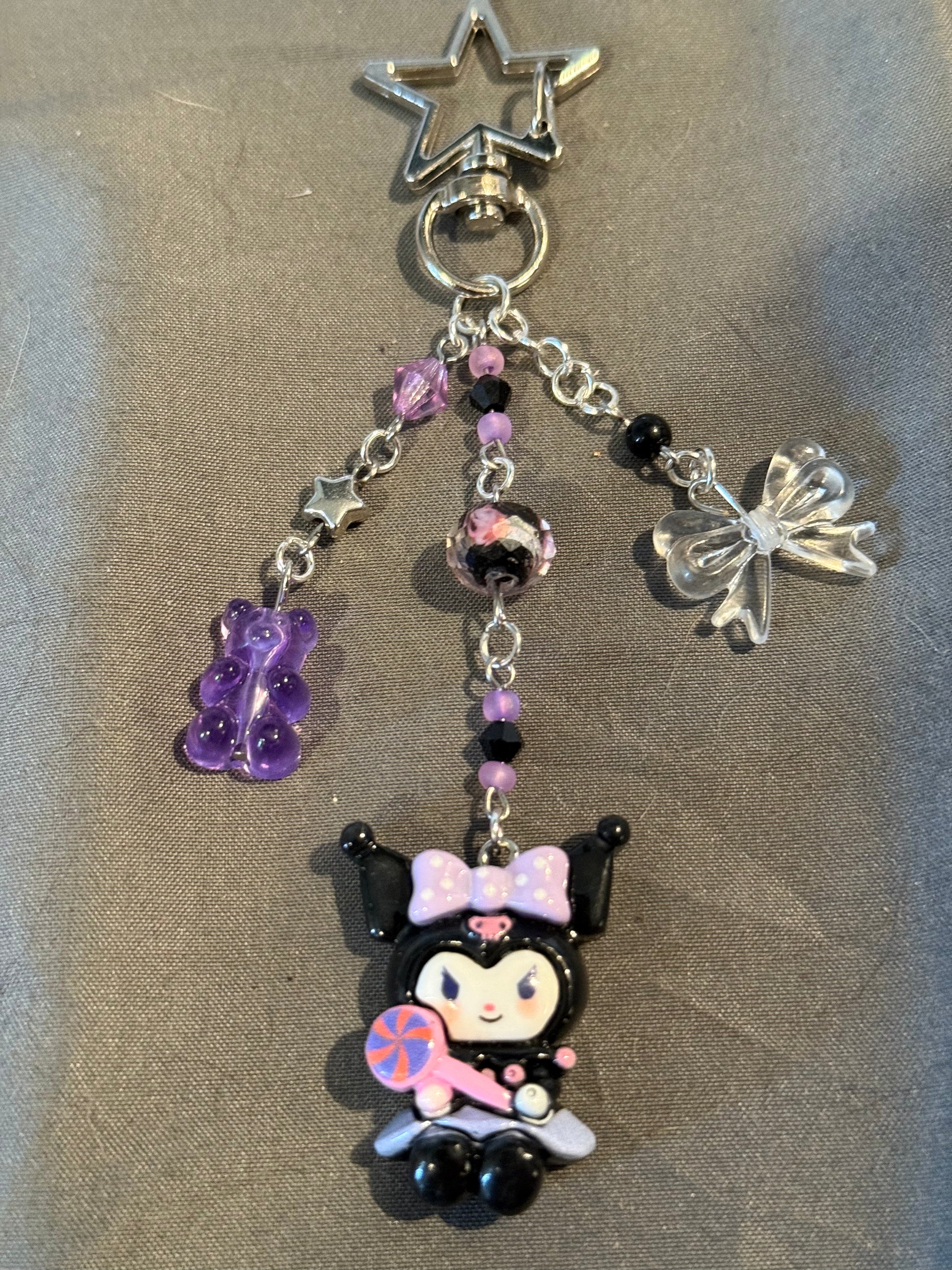 Kuromi Keychain (purple/black w/ star clip)